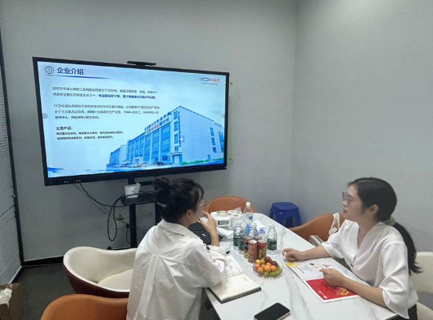 随后,李老师前往深圳市华诚达精密工业有限公司看望25届毕业生姬玉龙。在企业负责人陪同下,李老师参观了生产基地,了解设备运行与生产流程。姬玉龙分享入职体验及岗位工作要点,李老师为其成长给出针对性建议,并与企业负责人初步交流了校友培养、校企对接事宜。