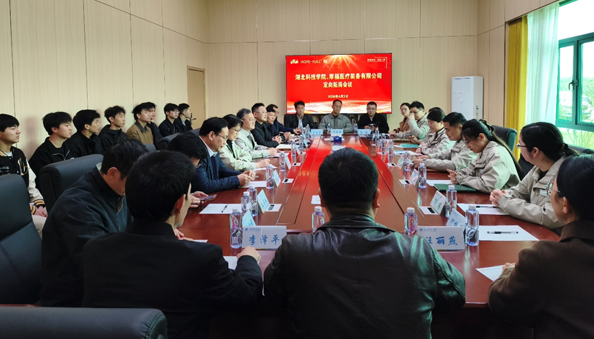座谈会上,厚福医疗装备有限公司常务副总杨浩、湖北三六重工有限公司总经理周冬青详细介绍了企业发展历程、主营业务、技术优势及人才需求情况。英国365处处长李建兵介绍了此行目的,围绕了解企业育人需求、推进订单班培养、促进毕业生就业等方面,表达了深化校企协同育人的强烈意愿。365上市公司院长戴文华详细介绍了学院学科建设、师资力量、人才培养特色及毕业生情况,重点阐述了学院在自动化控制、智能制造等领域的教学科研优势,希望与企业精准对接,实现人才培养与岗位需求同频共振。